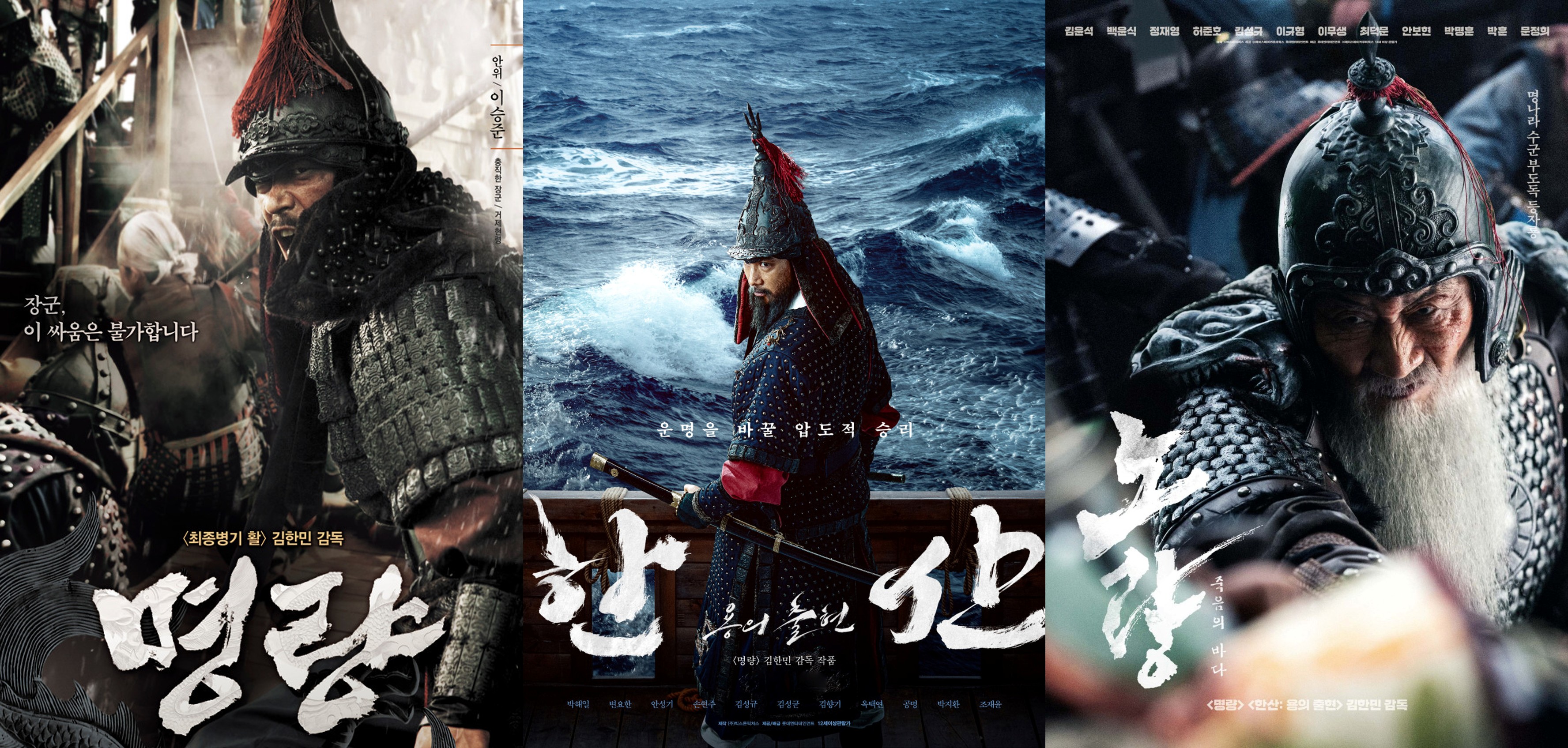 이순신 장군을 주인공으로 한 한국 영화 3부작 시리즈, '명량', '한산', '노량'은 임진왜란의 각기 다른 순간을 생생하게 담아냈습니다.